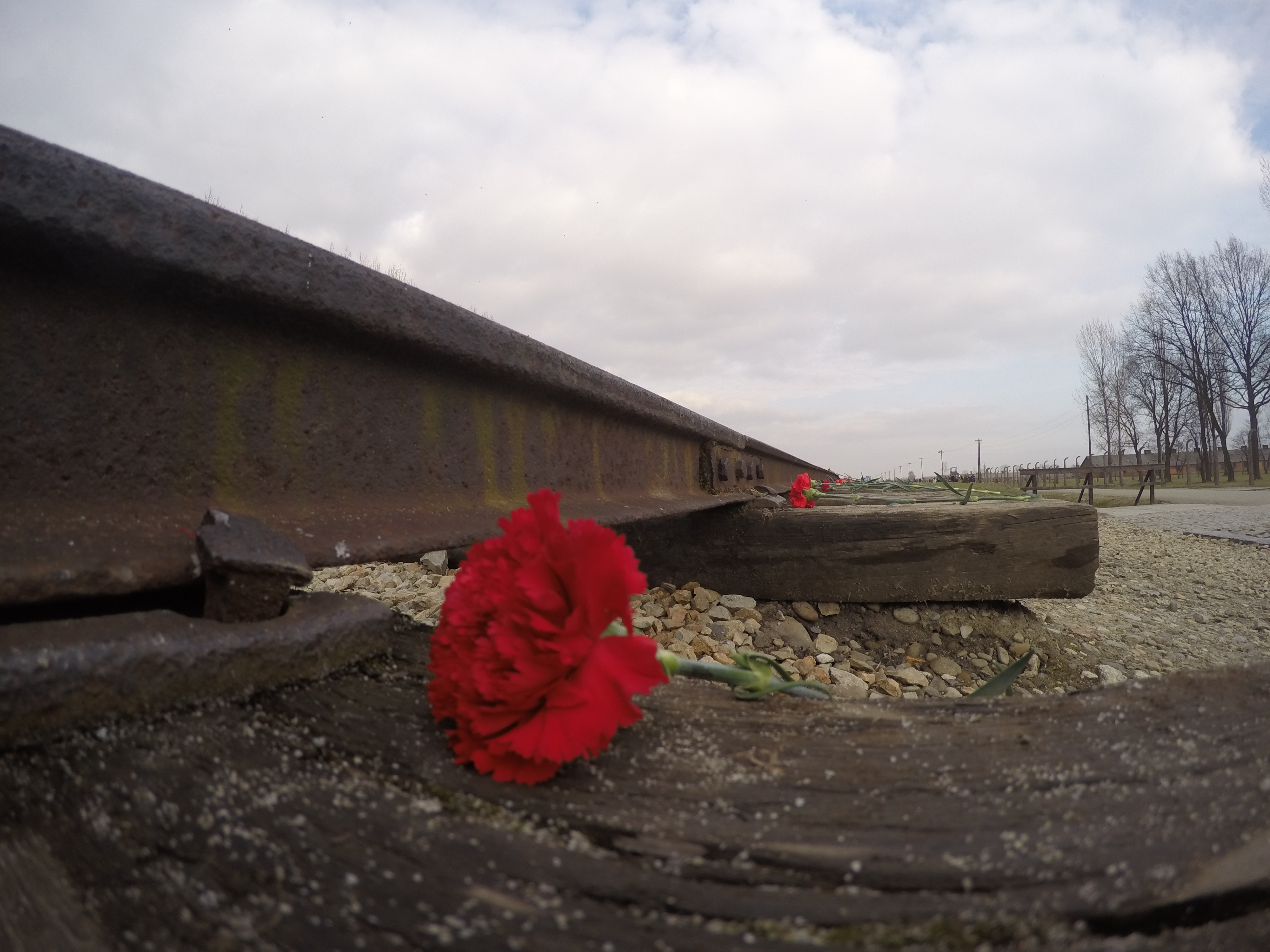 After this we took a short break, which was much needed and then got on a bus to the Birkenau camp. The moment we pulled up, I recognized the front from history text books. A giant brick building was at the entrance and a railroad stretched down the camp. Most of the living quarters and gas cambers were burned down, but the outline of the structures eerily faded in the distance. I had a ringing in my ears that would not go. All you could picture was the train coming and knowing that 80% were to be led to the gas chamber right then and there.