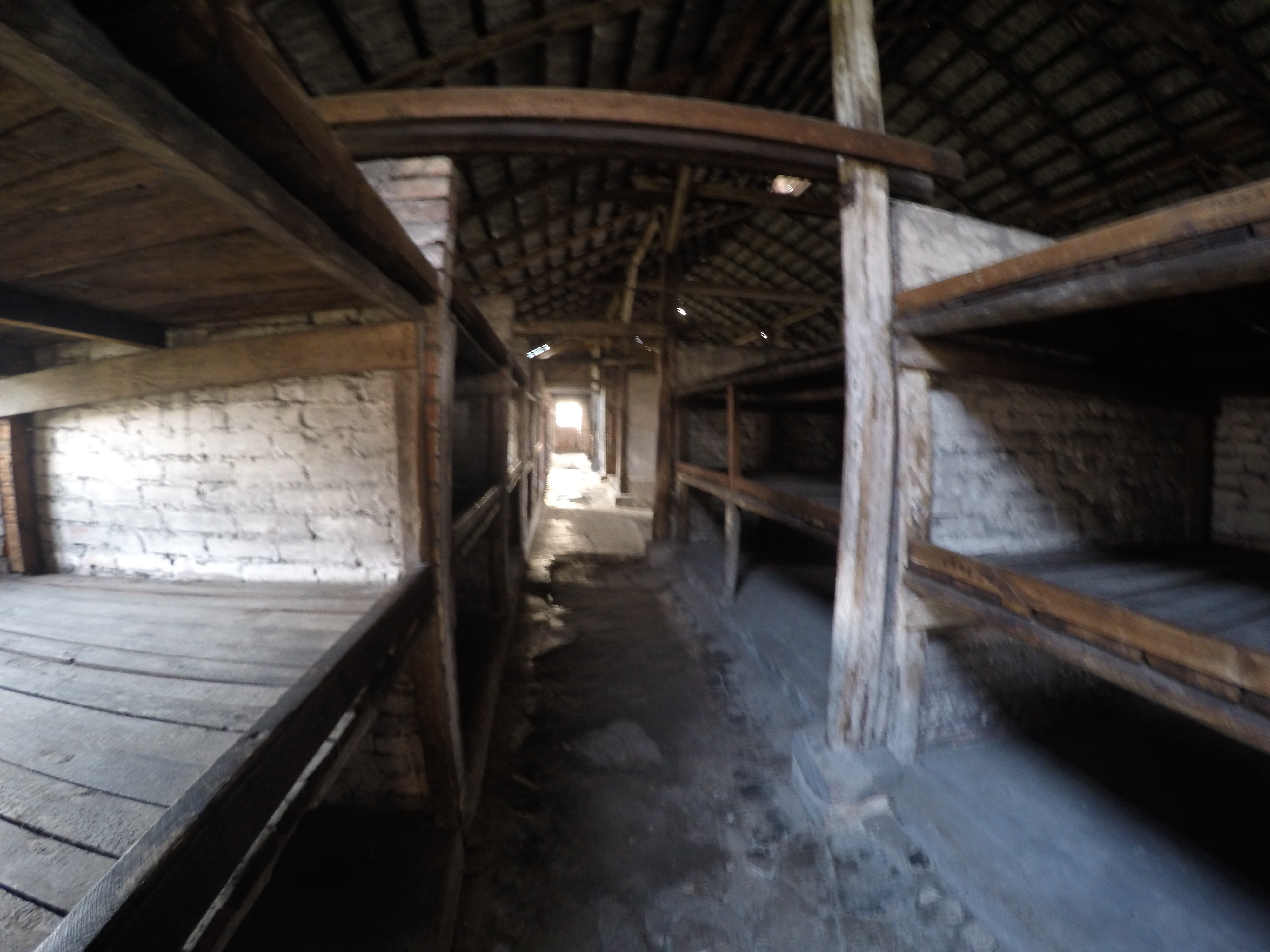 The last thing we did was go into one of the living quarters. They were dimly light only though some windows on the ceiling. There were rows of 3 story wooden shelves. Each shelf had 4-6 people sleeping on it. If you were unlucky you would be sleeping on the concrete under the wooden panels. I touched one of the panels. The wood was hard and cold. I was shivering from the cold day already, but I could not imagine those conditions being a prisoner here. As we were walking down the train tracks back to the shuttle, the sun was beginning to set. I looked back at the barracks and could picture the millions of people scared as they tried to sleep on those horrible wood planks.