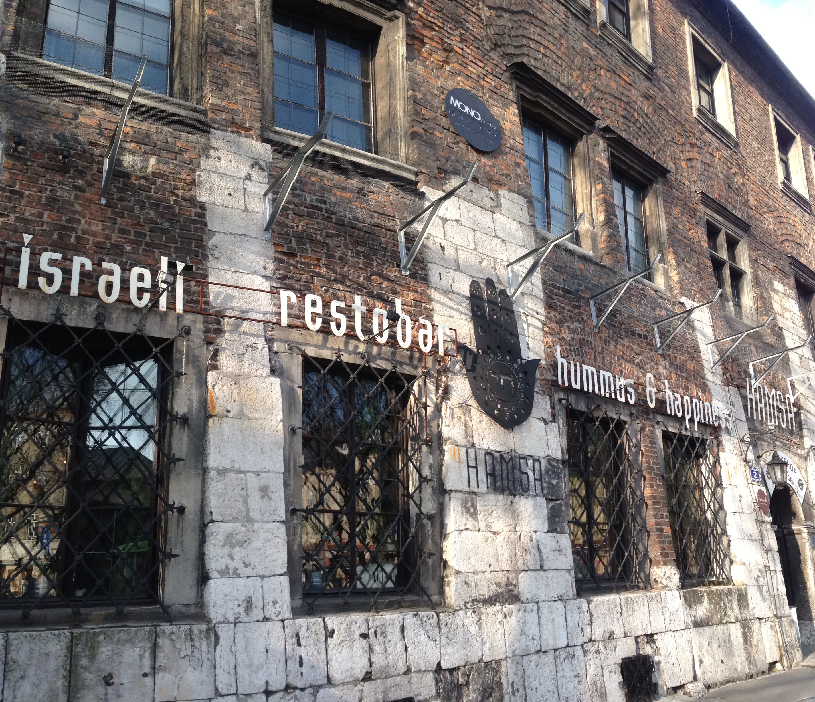 Next we headed to Old town, or the Jewish Quarter. The area was also beautiful. There was a huge memorial for all the Polish Jews and others who perished during the Nazi regime. Sadly the old synagogue was closed that day so we did not get to go inside. The area was filled with traditional Polish and Jewish food, so we went into a place called “Hummus and Happiness.” (I know…dreams can come true) The hummus was so good!!