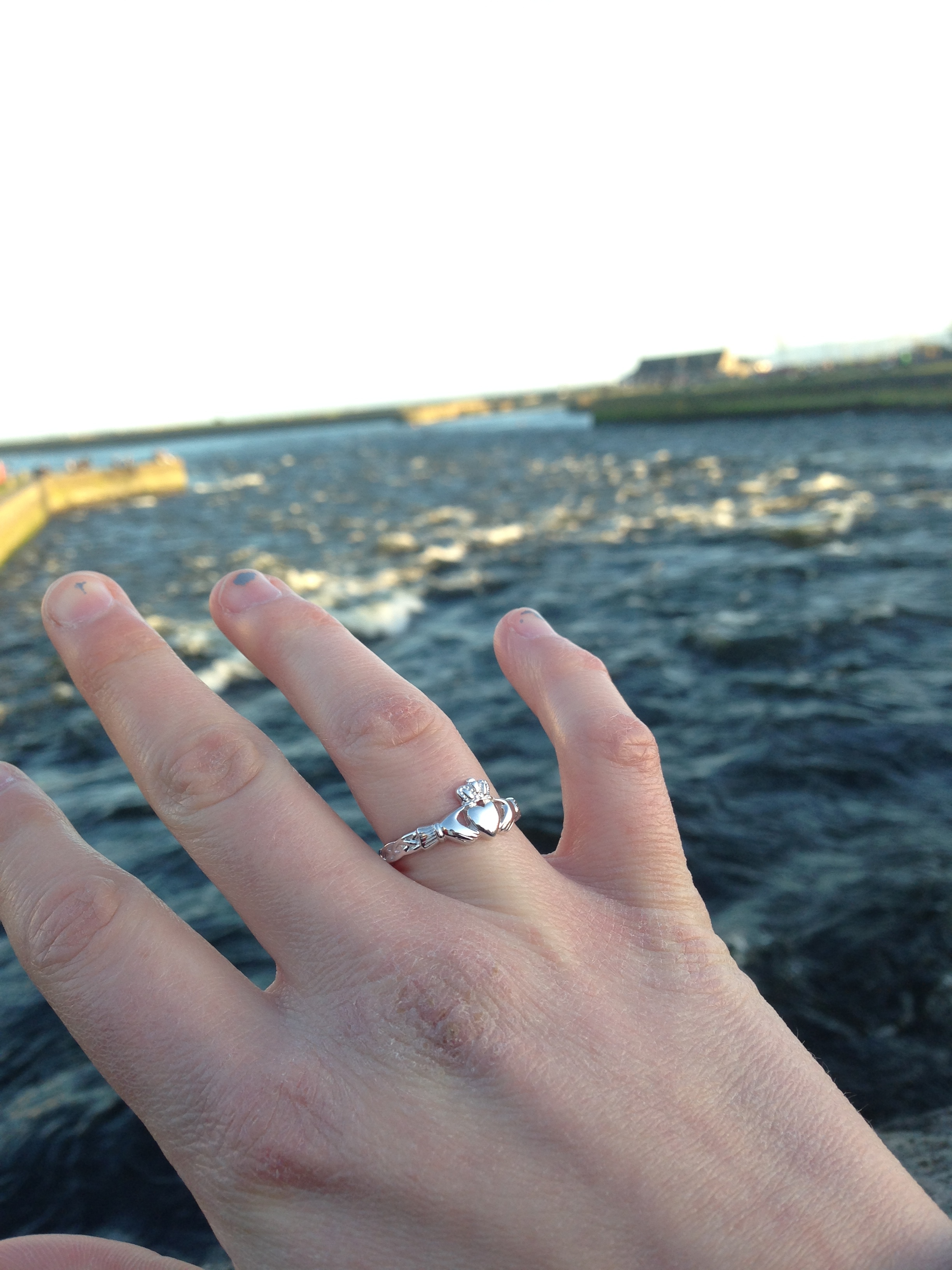 Then we headed to Galway for some shopping, eating and drinking. I have already written about Galway when I went for a whole day trip, but again, it is an amazing town. There is a beautiful river and music performances everywhere. Along with this, my mom, my sister and I all got Claddagh rings. They represent love, friendship and loyalty. You cannot buy it for yourself since it is bad luck, so we all bought them for each other. Wearing the heart towards you means that you are taken and wearing it outwards means that you are single. Many people will put diamonds in the rings and use them as engagement rings.