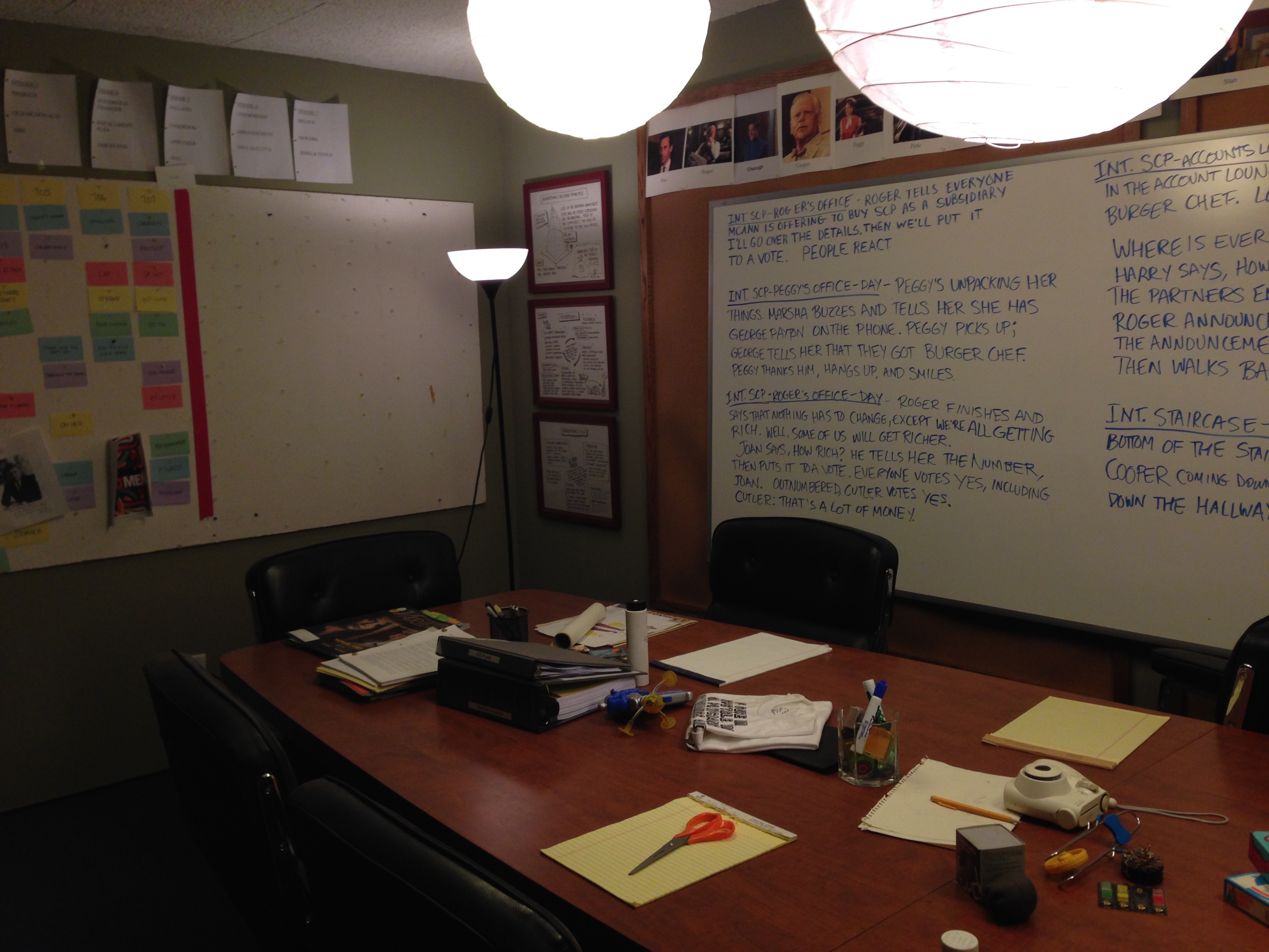 Each month or so, they change out the top exhibit. This one focused on Mad Men. It had original notes taken down from Matthew Weiner’s journal as he was coming up with the ideas for the show, as well as original copies of scripts. One cool part was a remake of the writer’s room. They had a picture of the real writer’s room and then the replica right in front of you. Also, they have remakes of specific sets you can walk around as well as notable costumes and props from the show.