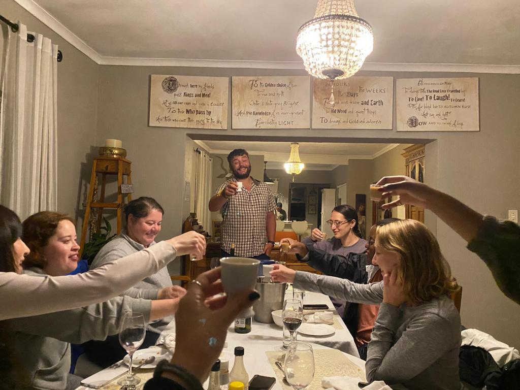 After our sunset game drives, we would have candlelight dinners outside by the fire. Again, there was dessert served after every meal, so I was in heaven. We also had the opportunity to try kudu. I found it very lean and not my favorite, but also keep in mind I am not a huge meat eater. We ended our first night with Springbokkie shots. The name refers to the springbok, which is an antelope found in South Africa, and also the country’s national animal. It is composed of crème de menthe (a bright green mint flavored liquor) on the bottom layer, and Amarula on the top layer. Amarula is made from the fruit of the African marula tree, and is a cream liquor. When made properly the colors of the shot are green and gold, or the colors of the South Africa national rugby union team with the springbok mascot.