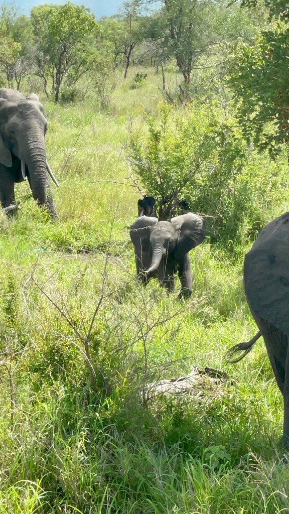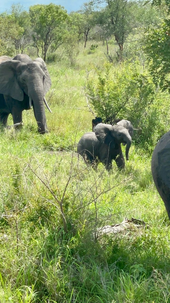 We got to see our second of the big five, elephants, during our first drive through Kruger. Even better, we got to see a family with a BABY ELEPHANT. I could cry. I did cry. You may notice that baby elephants are now being born with no tusk or smaller tusks. This is due to poachers killing off the elephants with bigger tusks. After that sad fun fact, please enjoy the myriad of elephant photos and videos below.