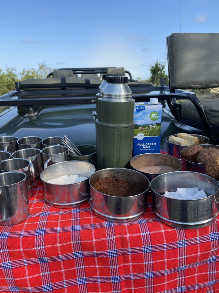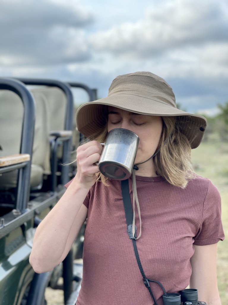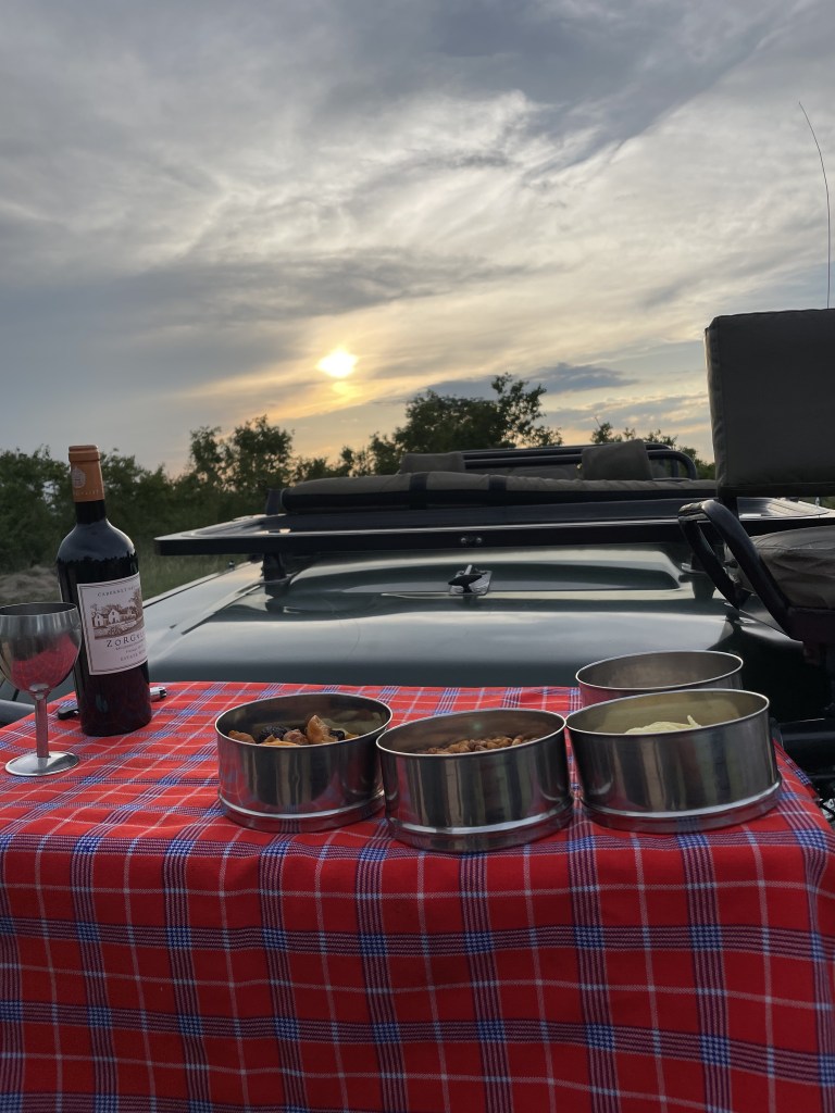 Every safari game drive included a break in the middle for wine or coffee, depending on the time of day. Since I know everyone is curious, yes, I did have to pee in the bush. I did it quickly and on the road with no grass or bushes for things to be hiding because I still have an overwhelming fear of a snake biting my clit. Anyways, I will never forget our sunrise and sunset stops, taking in the beautiful surrounding bush, and laughing with each other.