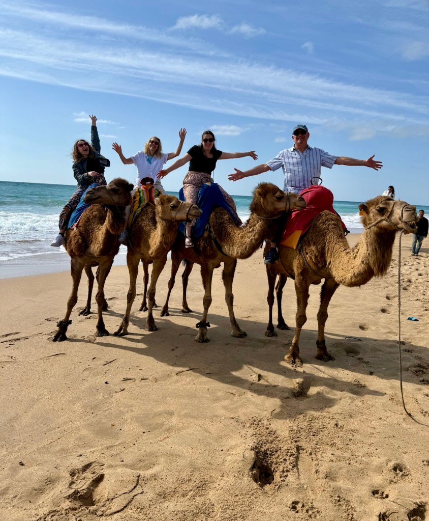 After the cave, we decided to do a family camel ride on the beach. In Morocco, camels are dromedaries, meaning they have one hump. These one-humped camels are native to the Middle East and North Africa. Here I was thinking all camels had multiple humps, but that is on me for assuming.