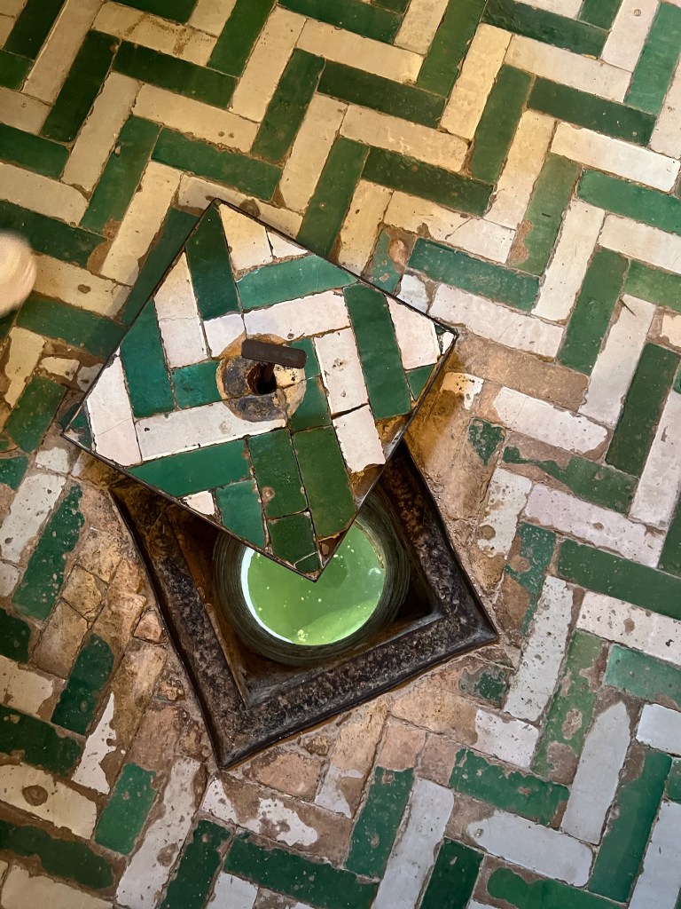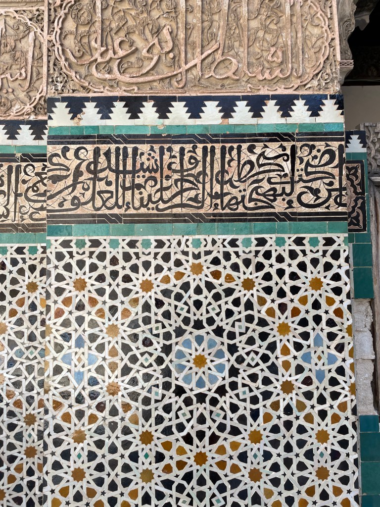 Inside the university and throughout Morocco the tile work and art puts a lot of meaning into numerology and colors. Typically green represents Islam and fertility, white represents purity and innocence, black represents the mystery of life, blue represents freedom, and yellow represents sun and life. I talked a lot about the number 7, but also the number 12 appears frequently – 12 zodiacs in astronomy, 12 months in a year, etc.