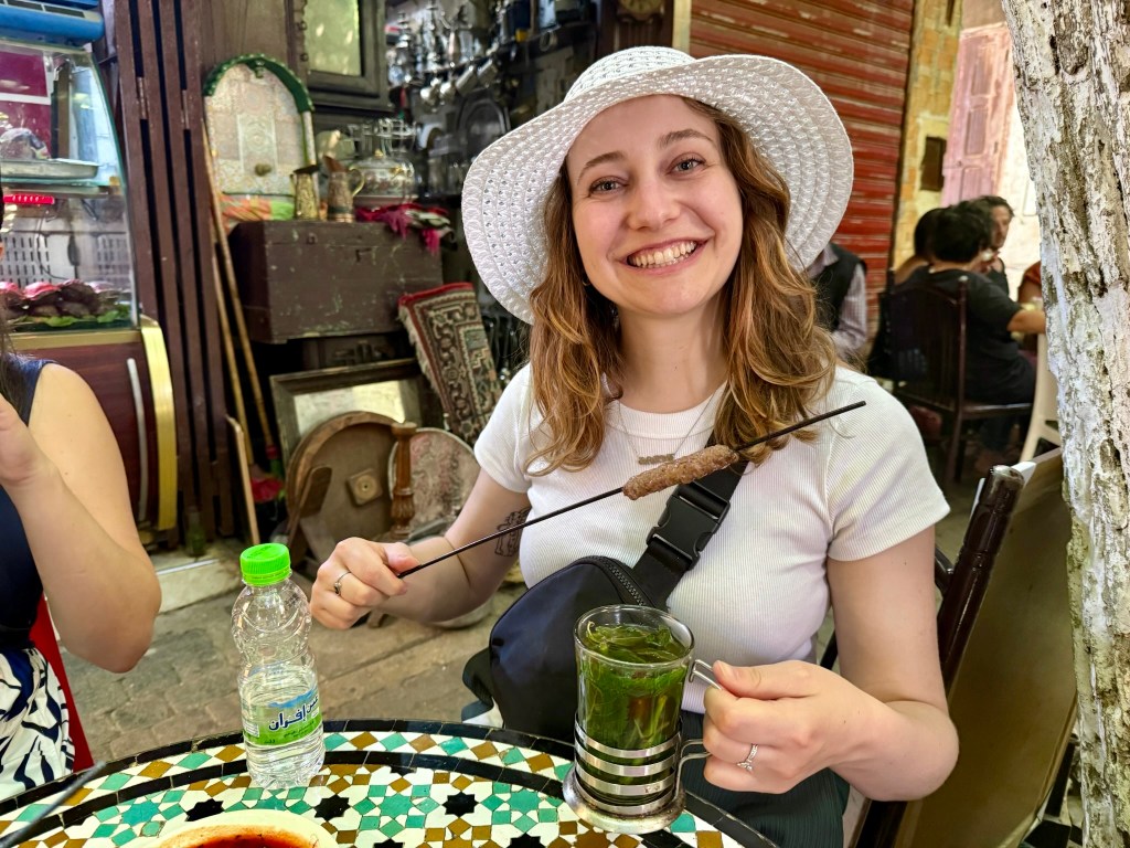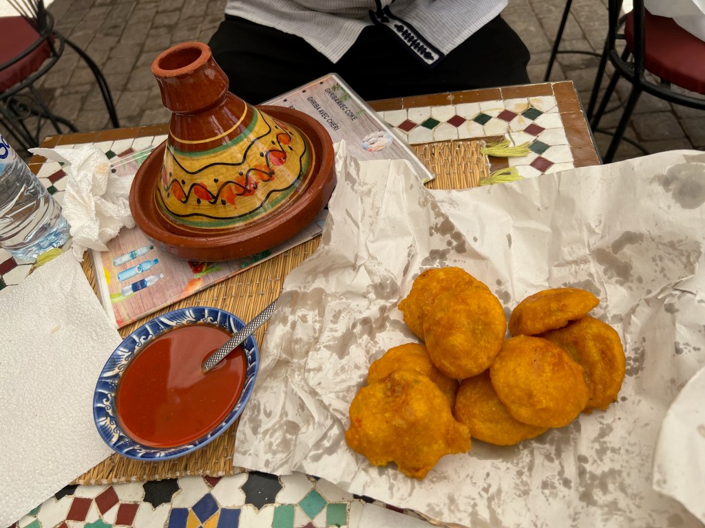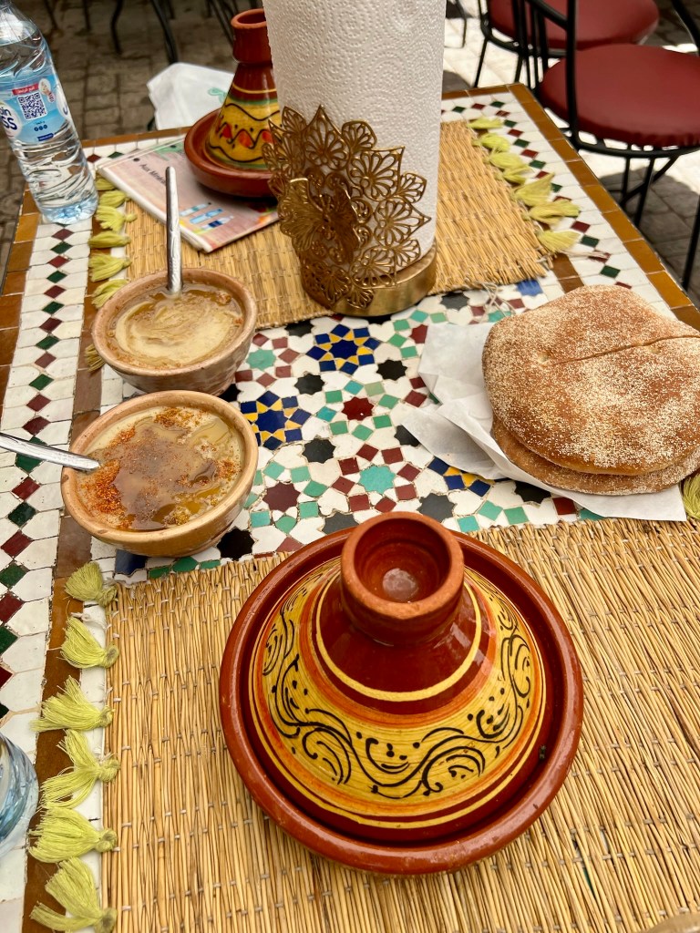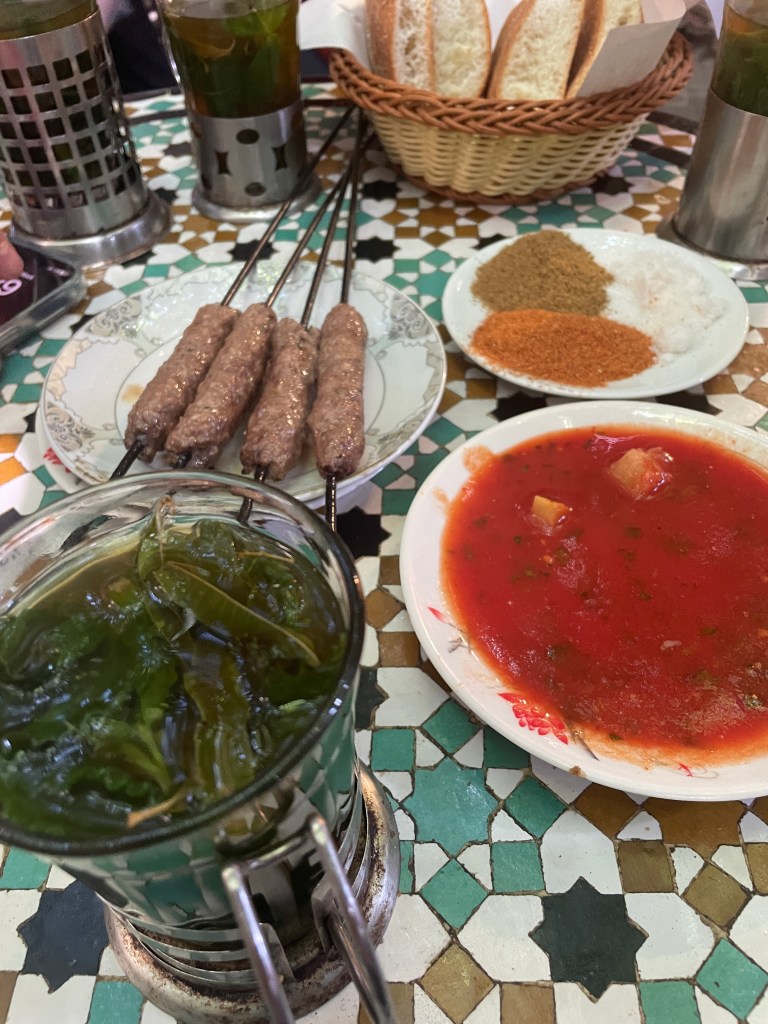 After the Fes tour, we decided to get dinner at a spot near our hotel. We sat outside, feeding scraps to the local cats, surrounded by other local families eating.