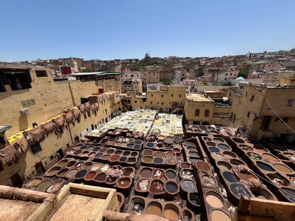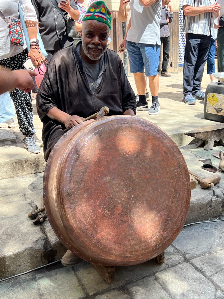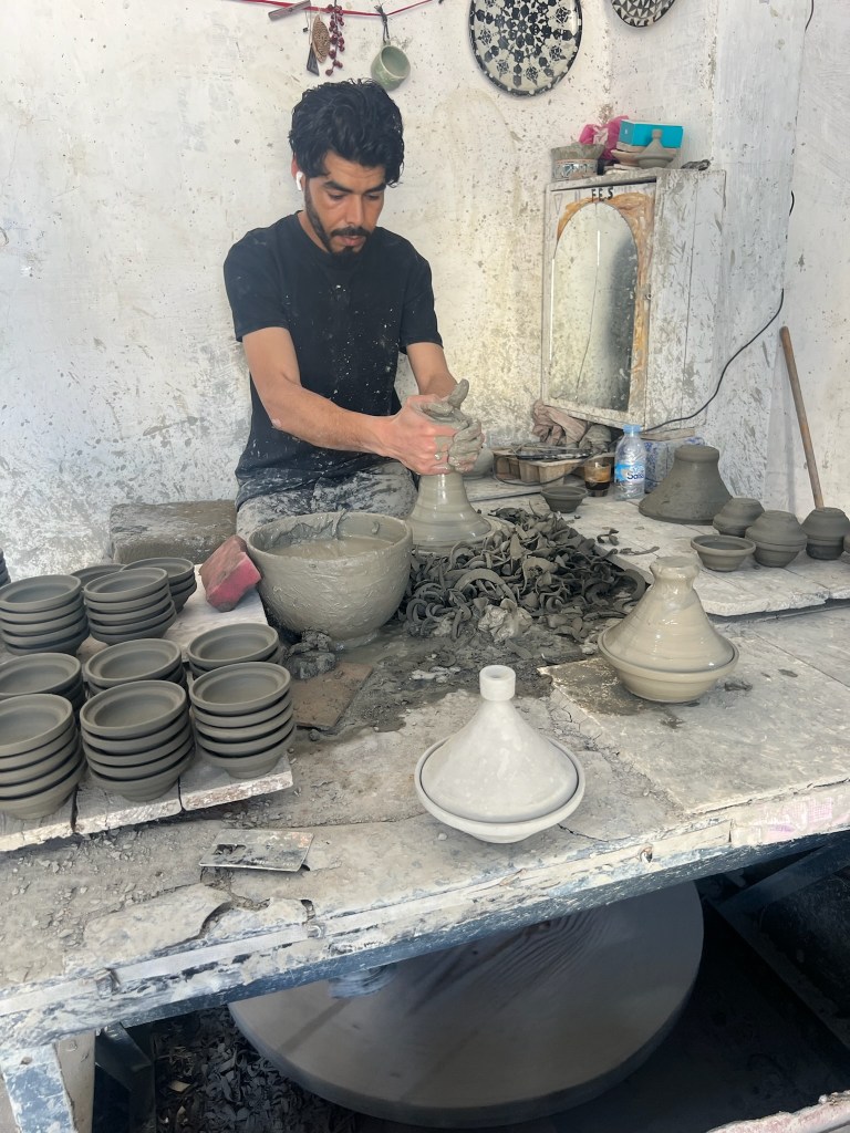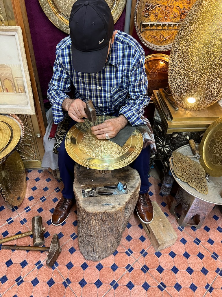 There are numerous squares throughout the medina that are named based on the artisan craft made there, including brass square, weaving square, and metalworks square. It also contains the Chouara Tannery from the 11th century, one of the oldest tanneries in the world. At the tannery they used pigeon poop to this day as it contains natural ammonia. It smells awful as you can imagine. We also went outside the medina to tour a ceramics and tile making shop. The artisans here are still using techniques from generations past. All artisans in the photographs have given consent to be photographed.