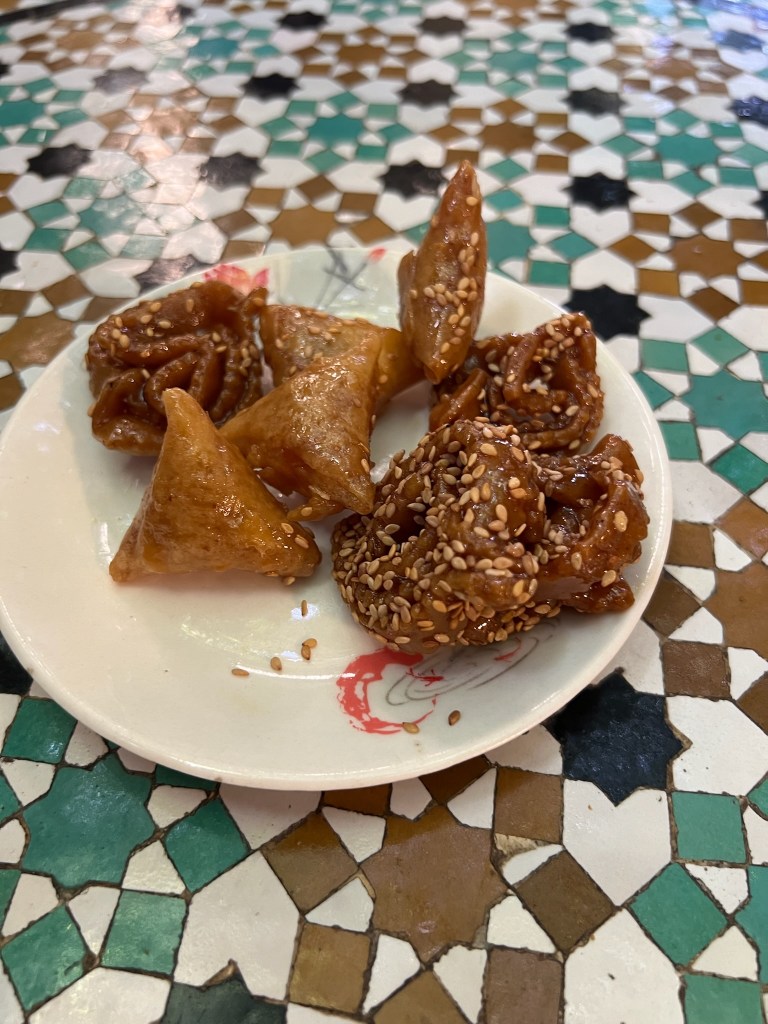 🥮 Chebakia (spiced dough – cinnamon, anise and orange blossom) fried and soaked in honey with sesame seeds)