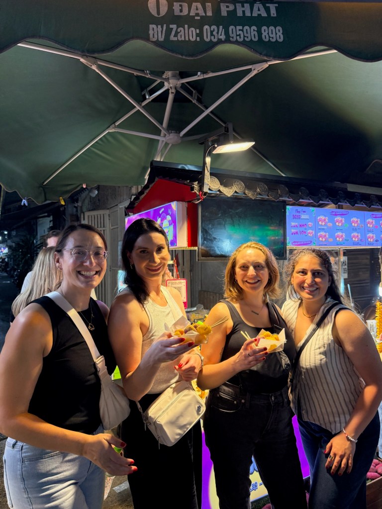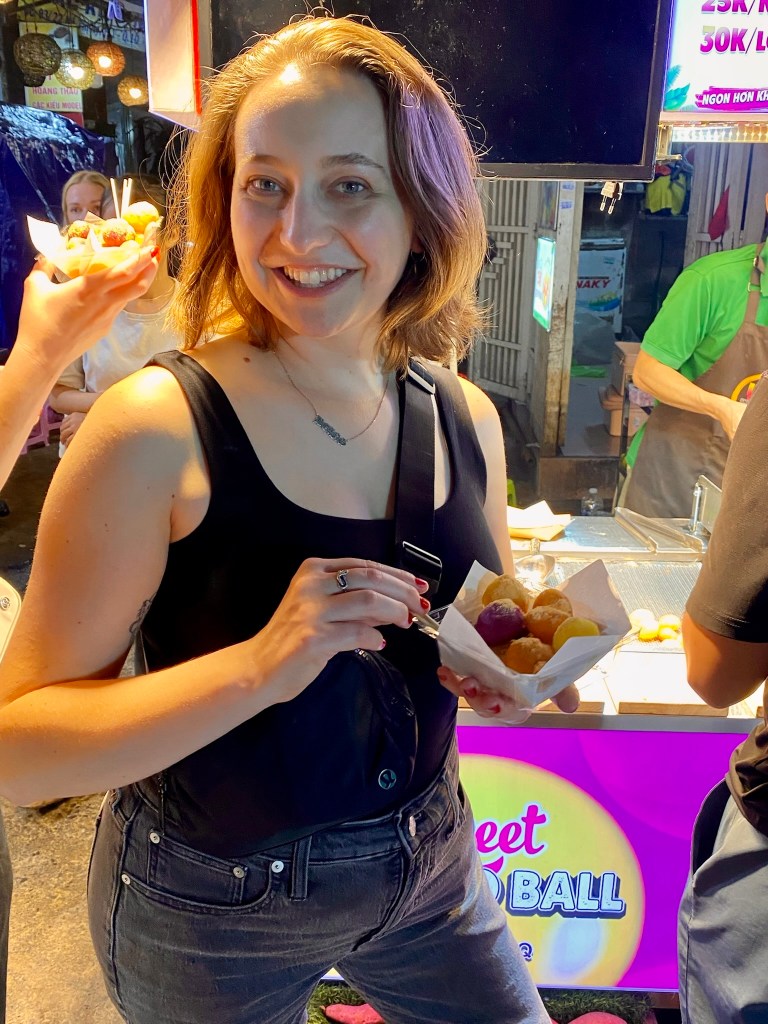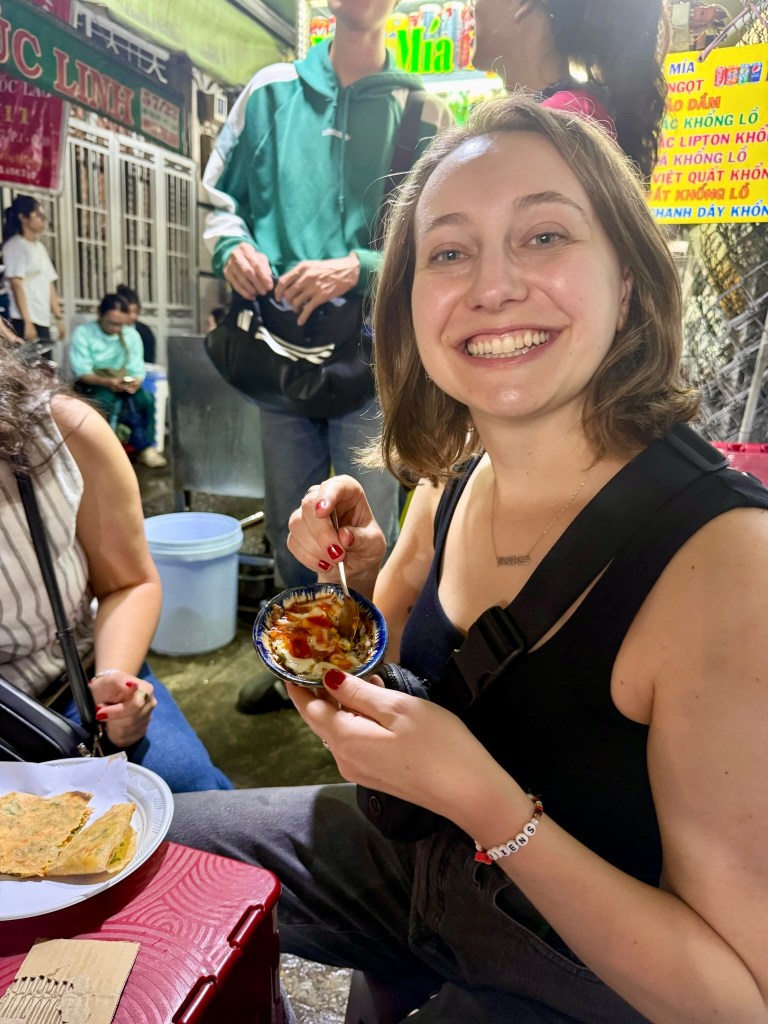 After the Cu Chi tunnels, we went on a nighttime Vespa street food tour of Saigon. The streets here are no joke. Let me tell you, I’ve crossed the streets in Vietnam through hundreds of mopeds. I can handle anything. You have to walk with confidence at a normal pace, as cars and bikes all zip around you and like the maniac I am, I got right on the back of a bike and joined the madness.