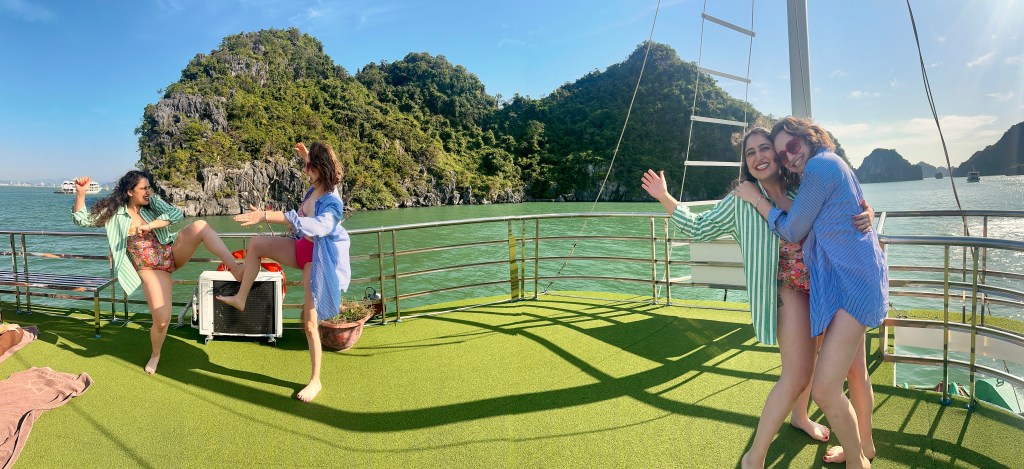 The next day we started our drive to Ha Long Bay, a UNESCO world heritage site with emerald waterways filled with tiny islands. We stayed on a cruise through the bay for 3 days and 2 nights. The boat itself felt like a Wes Anderson film, and truly was a magical experience I will never forget. Waking up to the bay and sipping my Vietnamese coffee overlooking the sunrise really makes you forget about everything else going on in the world.