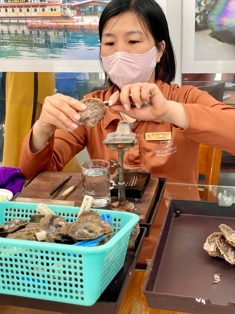 Vietnam is also well known for their pearl farms. We did stop at a pearl farm to see more about the process and to my surprise there are so many variations and types of pearls. Like everywhere when traveling, all roads lead to a gift shop. I did not get any pearls, but if you are in the market for some pearls, wait for your next Vietnam trip.